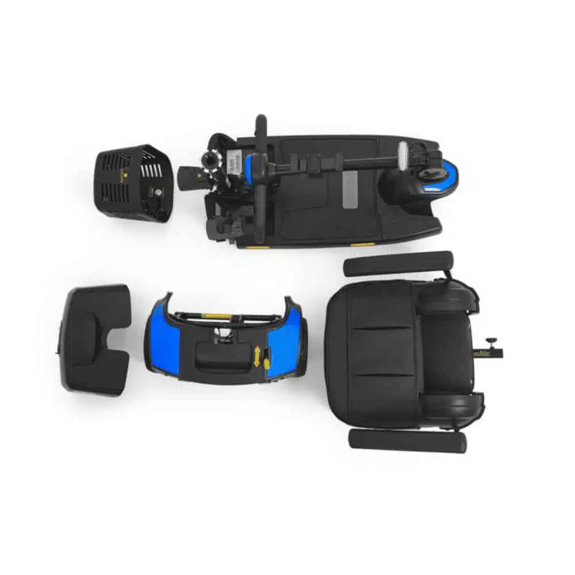 The enhanced Buzzaround XL comes packed with additional standard features to elevate your riding experience. Equipped with a wraparound Delta Tiller, an upgraded LED battery gauge, and an ultra-bright LED angle-adjustable headlight, the new Buzzaround XL also boasts extended length for increased foot space and an impressive turning radius. Plus, with its quick 4-step disassembly process, transporting the Buzzaround XL from one location to another is effortless.